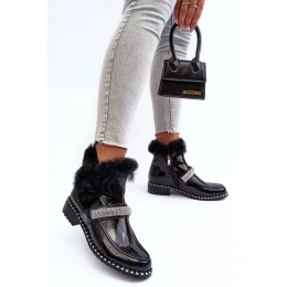 Boty ženy s nízkou přilbou byly vyrobeny z eko kůže. Osazené na plochém podpatku, který poskytne stabilitu při každém kroku. Tento model je ozdoben kožešinou a páskem s malými, početnými džetami. Střed oceněný obuvnickou tepelnou vložkou. Upevnění na zip. Měkká vložka zajišťuje pohodlí při používání. Navíc je špička zesílena. Při výběru velikosti se řiďte tabulkou velikostí.