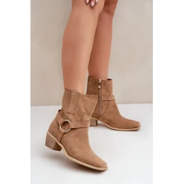 Dámské kotníčkové boty z přírodního semiše jsou stylovým modelem, ideálním na chladnější dny. Umístěné na stabilním sloupkovém podpatku poskytují pohodlí a decentně prodlužují postavu. Zapínají se na zip pro snadné obouvání a zaoblené špičky s čtvercovou podrážkou jim dodávají moderní charakter. Hřbet zdobí popruhy s ozdobným prvkem, což přidává eleganci a přitahuje pozornost. Tyto výjimečné kotníčkové boty se skvěle hodí jak do každodenních, tak do formálnějších stylizací, spojující pohodlí s módním designem.