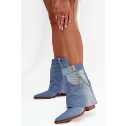 Dámské džínové kotníčkové boty jsou originální nabídkou, která jistě přitáhne pohledy. Vyznačují se neobvyklým střihem, umístěným na stabilním sloupkovém podpatku, na který navazuje nártový lem, a prezentují se mimořádně stylově. Model se zahnutými špičkami krásně zjemňuje postavu a zdůrazňuje ženský charakter obuvi. Výhodou je ozdobný řetízek, který lze odstranit a nosit jakkoliv, což je detail dodávající celku moderní, výrazný charakter. Díky tomu lze botky snadno sladit se stylingem. Jedná se o nabídku pro ženy, které rády vynikají módními doplňky.