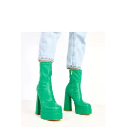 Elegantní kotníkové boty na vysokém sloupku vyrobené z vysoce kvalitní ekologické kůže. Model se vyznačuje masivní siluetou, má 15centimetrový podpatk ve tvaru stabilního sloupku a 5centimetrovou platformu, která vyrovnává výšku a poskytuje větší pohodlí při nošení. Boty mají kulatou špičku a 17,5centimetrový svršek, který se dokonale přizpůsobuje noze a zdůrazňuje moderní charakter stylizace. Praktické zapínání na zip usnadňuje obouvání a pryžová podrážka zajišťuje dobrý úchop. Vnitřek je vyroben z materiálu bez podšívky, co znamená, že se boty skvěle hodí do přechodného období a k různým outfitům, jak každodenním, tak elegantnějším.