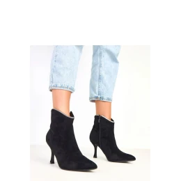 Elegantní dámské kotníčkové boty vyrobené z měkké ekologické semišové kůže, které se vyznačují decentním, ale zároveň efektním detailen, zdobením sirkony na horním okraji podpatku. Tento drobný ozdoby přidává botám eleganci a skvěle ladí s večerními stylizacemi. Model s 12 cm vysokým kotníkem jemně obepíná kotník, špičatý nos a 8,5 cm sloupcový podpatek krásně zjemňují postavu, zajišťují stabilní a pohodlný chůzi. Praktické zapínání na zip usnadňuje obouvání, a vnitřní část je vybavena měkkou látkou bez podšívky, díky čemuž se boty skvěle hodí do přechodného období. Ideální volba pro ženy, které ocení eleganci s nádechem lesku.