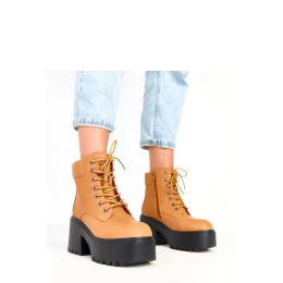 Moderní a výrazné masivní dámské boty vyrobené z trvanlivé ekologické kůže. Model má charakteristickou čtvercovou špičku, 12centimetrový svršek, pevný 9centimetrový podpatek a 5centimetrovou platformu, co jim dodává silný, módní charakter a zajišťuje pohodlí při chůzi. Boty mají klasické šněrování doplněné praktickým zipem, který usnadňuje obouvání. Vnitřek je vybaven textilií bez podšívky, což je činí ideálními pro přechodné období. Jsou to boty ve stylu chunky, které dokonale doplní městské outfit, ideální k džínám, kožené bundě nebo oversized kabátu.