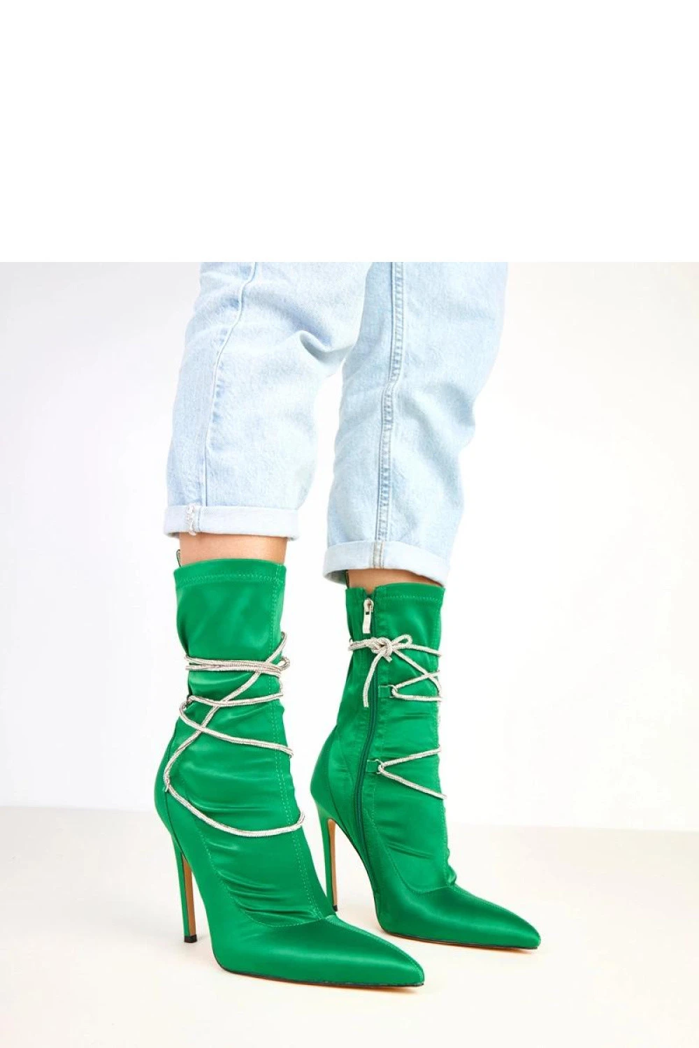 Jedinečné dámské botky vyrobené z elegantního saténu, které přitahují pozornost ozdobnými šňůrkami zdobenými kubickým zirkonem. Střídmý špičatý nos a štíhlá 12centimetrová jehla dodávají celku smyslný a luxusní charakter. Model má 21centimetrový nárt, který krásně zdůrazňuje linii nohou, a praktické zapínání na zip zajišťuje pohodlné obutí. Vnitřek je vybaven měkkou látkou, bez dalšího vyztužení, což z nich činí ideální volbu na jarně-letní sezónu nebo elegantní příležitosti. To jsou efektní a lesklé botky, které skvěle doplní večerní outfit, dodají mu eleganci a oslnivý charakter.