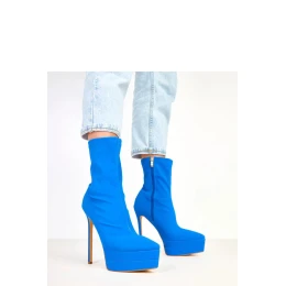 Elegantní dámské botky vyrobené ze saténu, které se vyznačují luxusním leskem a ženským charakterem. Model má úzkou špičku, 15,5centimetrový jehlový podpatek a 4,5centimetrovou platformu, co zajišťuje efektní zeštíhlení postavy při zachování stability. 16cm vysoký svršek krásně zdůrazňuje linii nohou a praktické zapínání na zip usnadňuje obouvání. Vnitřek je vybaven látkou a absence izolace z nich činí ideální botky na jarní a letní sezónu nebo večerní události. Je to efektní a elegantní model, který dodá eleganci večerním a módním outfitům, přitahující pohledy decentním leskem saténu.
