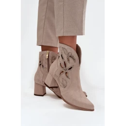 Boty dámské vyrobené z přírodního semiše. Vzor se štěrbinami jim dodává originalitu a lehkost, zdůrazňuje výjimečný charakter tohoto modelu. Sloupkový typ podpatku poskytuje stabilitu a pohodlí a zároveň krásně prodlužuje postavu. Špičaté špičky přidávají elegantní akcent, dělají boty velmi elegantní. Díky zipu jsou snadno nazouvány a svlékány, co zvyšuje pohodlí běžného nošení. Tento obuv je ideální na přechodnou sezónu, skvěle doplní jak každodenní, tak elegantnější outfit.
