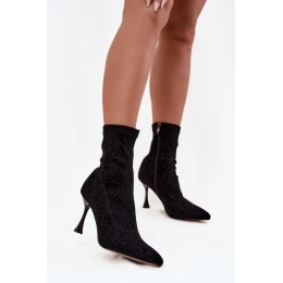 Dámské botky vyrobené z měkkého ekologického semiše jsou ideální volbou pro večerní vycházky a speciální příležitosti. Model okouzluje dekorativními prošíváními a elegantními ozdobami, které mu dodávají lesku a ženského charakteru. Umístěný na ozdobném jehlanovém podpatku krásně zdůrazňuje postavu a zúžuje nohy. Špičaté špičky. Zip na boku usnadňuje obutí. Jsou to skvělé botky pro ženy, které rády vynikají stylem, dokonale se hodí k šatům, sukním a elegantním sestavám na večírky nebo večerní setkání.