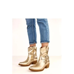 Elegantní boty ve zlaté barvě vyrobené z vysoce kvalitní ekologické kůže, které okouzlují svým stylovým a ženským charakterem. Model je zdobený přezkou, který dodává eleganci, a štíhlým, špičatým nosem, který zdůrazňuje elegantní tvar nohy. Boty mají stabilní podpatek ve tvaru sloupku o výšce 5 cm, který zajišťuje pohodlí a jistotu při chůzi. Zapínání na zip usnadňuje obouvání, a výška 16 cm třísla skvěle ladí s podzimními a zimními outfitmi. Vnitřek je vyroben z měkké látky bez podšívky, což z něj činí ideální model na přechodné období. Jedná se o výjimečné boty pro ženy, které oceňují eleganci, lesk a módní detaily.