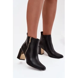 Botky pro ženy vyrobené z ekokože jsou elegantním návrhem, který spojuje klasiku s moderním akcentem. Model s pevným sloupkovým podpatkem poskytuje pohodlí při nošení a jistotu kroku, zatímco zaoblené špičky dodávají celku jemný ženský charakter. Boty se zapínají na praktický zip a další ozdobný zip dodává stylu. Zrcadlový prvek umístěný na podpatku je decentní, efektní detail, který přitahuje pohled. Jsou to ideální botky na každý den i na speciální příležitosti, skvěle doplní jak formální, tak volné stylizace.