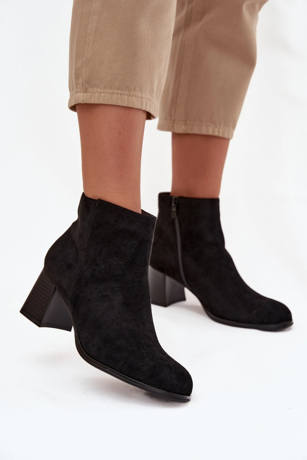 Botky pro dámy vyrobené z ekokožeše jsou elegantní a univerzální nabídkou na chladné dny. Model s klasickým střihem je umístěn na stabilním sloupkovém podpatku, který zajistí pohodlí a jistotu kroku. Boty se zapínají na zip, co usnadňuje obouvání a svlékání. Jsou to nadčasové botky, které skvěle doplní jak každodenní, tak i elegantnější outfit.