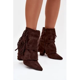 Dámské kotníčkové boty z ekosuede jsou ideální kombinací stylu a originálních detailů, které přitahují pozornost. Spodní část kotníku jemně zjemňuje postavu a špičaté špičky dodávají eleganci a ženský charakter. Model zdobený řasami a tenkými pásky s zlatými sponami přináší módní akcent, který dodává vzhledu výjimečný, moderní vzhled. Kotníčkové boty se skvěle hodí do každodenních outfitů, stejně jako do více formálních stylizací, přinášejí do nich nádech originality a elegance. Pohodlné a efektní, jsou skvělou volbou na každý den i na speciální příležitosti.