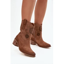 Botky pro dámy vyrobené z přírodního semiše jsou elegantní a stylovým návrhem na přechodnou sezónu a teplejší podzimní dny. Jemný vzor s dírkami dodává celku lehkost a výjimečný charakter. Model je umístěn na stabilním podpatku ve tvaru bloku, který zajišťuje pohodlí při chůzi a jemně zdůrazňuje postavu. Mandlové špičky. Zapínání na zip usnadňuje obouvání a svlékání, což činí obuv pohodlnou v každodenním používání. Jsou to botky, které skvěle doplní jak každodenní, tak elegantní stylizace, přidávají jim jemnou eleganci a módní charakter.
