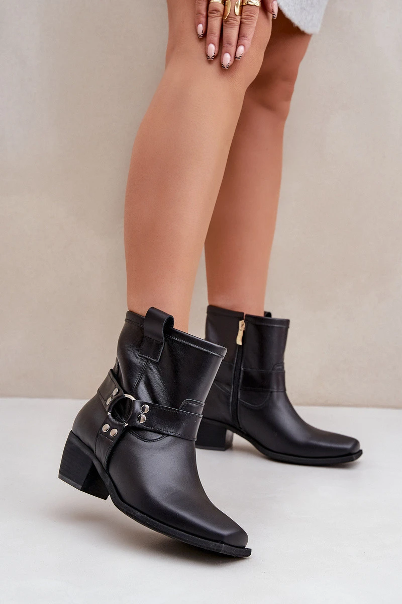 Boty Z Přírodní Kůže Na Podpatku Černé Zazoo 3444/2