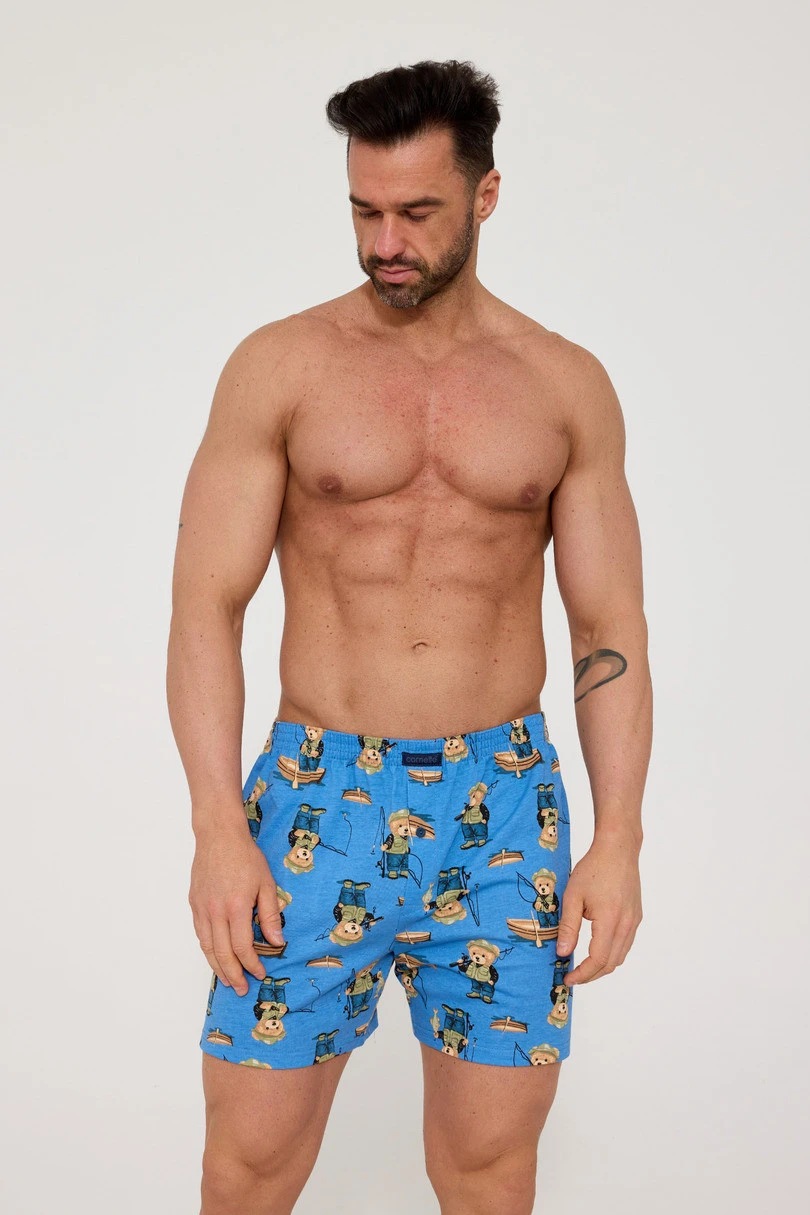 Model ten posiada praktyczny rozporek zapinany na guzik oraz elastyczną gumę w pasie, która została obszyta bawełną – co dodatkowo zwiększa komfort noszenia, nie powodując ucisku ani podrażnień. Szortowa konstrukcja gwarantuje swobodę ruchów i dopasowanie do sylwetki. Idealne zarówno na co dzień, jak i na noc.