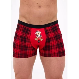 - pánské těsné boxerky v klasickém červeném kostkovaném vzoru s hravým potiskem medvídka na motorce v bundě a santovské čepici