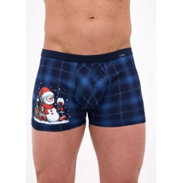 Pánské upnuté boxerky - tmavě modré kostkované s legračním sněhulákem