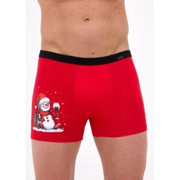 Pánské upnuté boxerky - červené s legračním sněhulákem