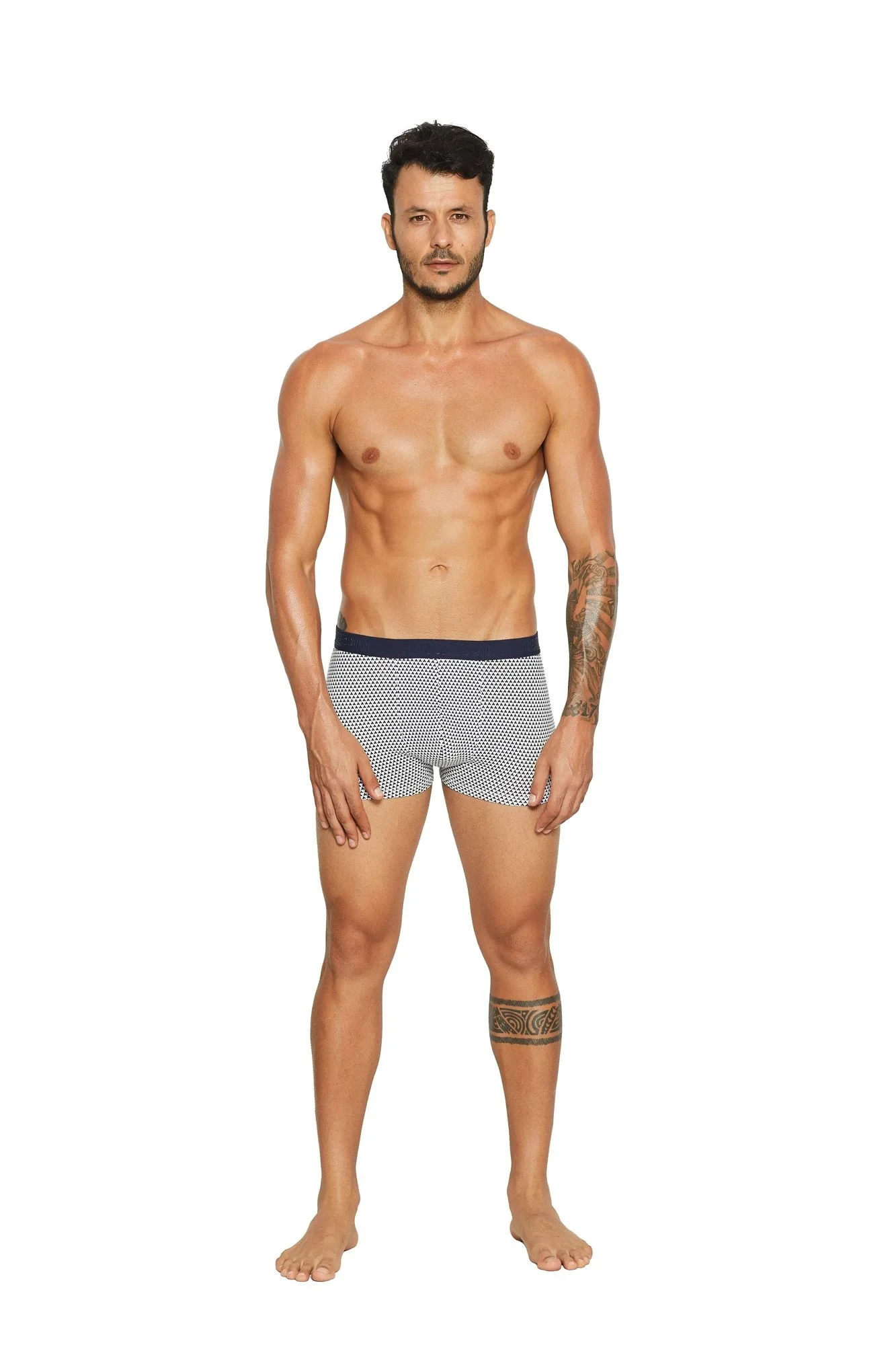Další hitová edice malých, fascinujících potisků v klidných barvách, Vision jsou právě boxerky v lehkém, výrazném geometrickém vzoru. Kontrastní elastický pas s logem značky. Měkká tkanina, bez otlaků na nohavičkách. Složení: 95 % bavlna, 5 % elastan.