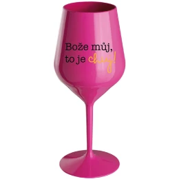 BOŽE MŮJ, TO JE CHUJ - růžová nerozbitná sklenice na víno 470 ml