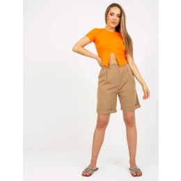 Tmavě béžové dlouhé šortky s elegantním okrajem .
