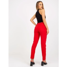 Červené látkové kalhoty s páskem.