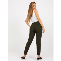 Tmavé khaki kalhoty z rovné látky s kapsami .