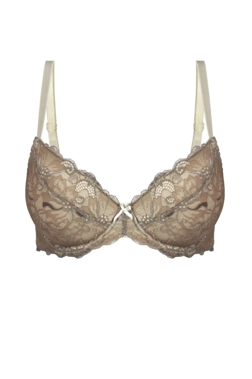 Jemná, a přesto smyslná podprsenka z jemné květinové krajky. Měkké košíčky s kosticemi krásně tvarují a podporují poprsí a udržují jeho přirozený tvar. Průhledná krajka dodává lehkost a eleganci a jemná mašlička mezi košíčky je ženskou tečkou na závěr.