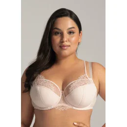 AV 2163 Serenity Semi Soft – biustonosz w eleganckim odcieniu ecru to absolutny must-have w wiosenno-letniej garderobie! Ten półusztywniany model zapewni Ci doskonałe podtrzymanie, zebranie i stabilizację, nawet przy bardziej wymagającym biuście. Dolne miseczki wyścielone miękką pianką gwarantują komfortowe oparcie, podczas gdy górna część z delikatnego, stabilnego tiulu zmysłowo otula i subtelnie osłania piersi. Ozdobny mostek harmonijnie łączy się z koronkowymi wstawkami na miseczkach, wzdłuż których biegnie cienkie, dodatkowe ramiączko, dodając całości elegancji. Szeroki, stabilny obwód utrzyma biustonosz na właściwym miejscu, a wygodne ramiączka odciążą ramiona. Pokochaj delikatność i komfort Serenity!
