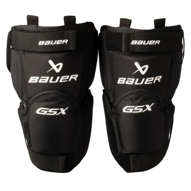 ochraniacze kolan BAUER GSX Komfort, który pozwala grać lepiej Najwygodniejsze ochraniacze kolan z serii GSX, jakie dotąd powstały. Dzięki anatomicznej konstrukcji i elastycznym paskom z neoprenu, możesz w pełni skupić się na grze – bez potrzeby ciągłego poprawiania sprzętu. To idealny wybór dla bramkarzy na poziomie rekreacyjnym, którzy chcą po prostu czuć się pewnie i swobodnie w każdej interwencji. Główne cechy: Dopasowanie, które nie zawodzi: Anatomiczny profil kolana zapewnia naturalne ułożenie ochraniacza na nodze, co przekłada się na większą stabilność i komfort podczas każdego ruchu. Komfort przez cały mecz: Paski z neoprenu utrzymują ochraniacze dokładnie tam, gdzie powinny być – bez przesuwania i ucisku. Dzięki temu możesz skupić się na bronieniu, a nie na poprawianiu sprzętu. Lekka, ale skuteczna ochrona: Konstrukcja zaprojektowana z myślą o początkujących i średniozaawansowanych bramkarzach, zapewnia odpowiednią ochronę przy zachowaniu niski