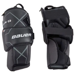 Chrániče kolen Bauer Pro Brankářské chrániče kolen vycházejí z konstrukce Vapor 1X, chrániče mají vylepšené některé klíčové oblasti, aby lépe padly a chránily brankáře na vysoké úrovni.Chrániče používají odolnou nylonovou konstrukci s koženými překryvy v oblastech s vysokým opotřebením.Koleno brankáře je chráněno kompozitním CURV.Vnější chránič je vyložen Poronem, pro pohodlí a větší odolnost proti nárazům.Elite má mnohem širší kryt chrániče kolen, takže je o něco objemnější než Pro.