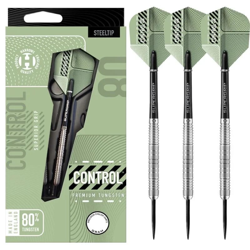 - Šipky Control jsou vyrobeny z vysoce kvalitního 80% wolframu a mají viditelné mikrořezání po celém barrelu, které hráčům poskytuje pevný úchop.
