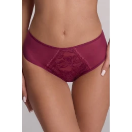 Figi brazylian AV 1396 Chianti to połączenie klasyki z nutą zmysłowości. Ten wyjątkowy model wykonano z jedwabiście miękkiej mikrofibry w głębokim, kobiecym odcieniu wina. Przód fig zdobi dekoracyjny panel z haftowanej koronki w kwiatowy wzór, który dodaje lekkości i romantycznego charakteru. Tył pozostał gładki, ale wykończenie w stylu brazylian subtelnie podkreśla pośladki, optycznie je zaokrąglając.