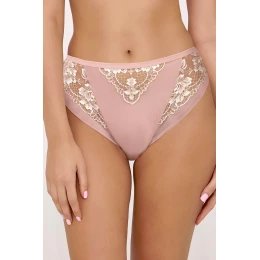 Podprsenky AV 2246/B Rosegold jsou kvintesencí ženskosti a moderní elegance. Jsou vyrobené z jemné tkaniny v decentním odstínu růžového zlata a zdobí je složitá květinová výšivka, která jim dodává luxusní nádech. Průhledné tylové vsadky na přední straně a na bocích jemně odhalují tělo a zdůrazňují smyslný styl prádla.