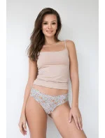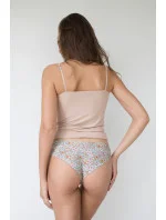 Limitovaná kolekce BEIGE STORY obsahuje malé, jemné květy v pastelových odstínech béžové s nádechem oranžové, tyrkysové a lila. Jemně rozptýlený odkaz je ideální pro romantické duše a ty, kteří mají rádi klasický styl. Celá kolekce je mimořádně lehká a ženská, s hlubokým vykrojením zdůrazňujícím hýždě. Pro milovnice jiné barevné škály máme stejný potisk v jemné růžové barvě - PINK STORY. Stejný potisk najdete také na klasickém modelu SIMPLE, MAXI s vysokým pasem a tričku s tenkými ramínky. Pro větší pohodlí má každý model vložku ze 100% bavlny, která chrání před podrážděním.