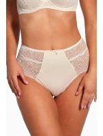 Velmi ženské kalhotky s vysokým pasem. Vpředu z hladkého úpletu s okouzlující mašlí. Boky a záda z květinové krajky.