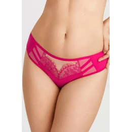 Vysoké brazilské kalhotky vyrobené z měkké mikrovlákna zdobené vpředu vsadkami z tylu a jemnou krajku. Zadní strana hladká. Nohavice vpředu zakončené hladkou elastickou páskou. Zadní nohavice jsou hladké, zdvojené tylu elastickou páskou.