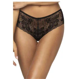 Sentimentální brazilské kalhotky jsou celé vyrobeny z krajky, s ozdobnou mašlí vpředu.