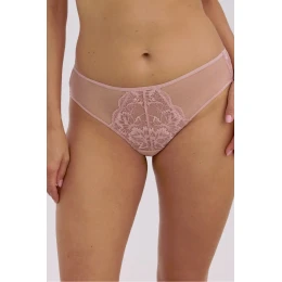 Brazílské kalhotky jsou velmi ženským modelem, který smyslně zdůrazňuje postavu a vystavuje přirozené tvary. Pečlivě propracovaný střih se krásně skládá na těle, zdůrazňující linii boků a hýždí. Zadní část vyrobená z jemné, průsvitné krajky dodává prádlo lehkost a jemnou smyslnost. Krajčířské a síťové ozdoby tvoří elegantní, jemnou kompozici, která přitahuje pozornost a zdůrazňuje vysokou kvalitu zpracování. Model je dokončen plochou gumou, díky čemuž kalhotky perfektně sedí na těle, neucpávají a zůstávají téměř neviditelné pod oblečením. Je to ideální volba pro ženy, které ocení spojení pohodlí s elegantním, svůdným stylem.