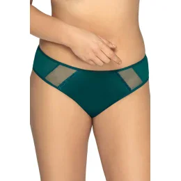 Brazile kalhotky. Měkká látka v zelené barvě byla zkombinována s jemným tylem v chladivé barvě.