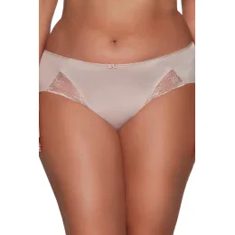 Přední díl ozdobený krajkou. Zadní díl kalhotek olemovaný tylovými lištami.
