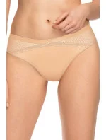Dámské kalhotky brazilského střihu jsou vyrobeny z hladkého mikrovlákna. Přední a zadní díl zdobí výrazná krajka, pas je lemován plochou gumou