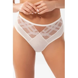 Dámské kalhotky brazilky. Odhalující a zdůrazňující hýždě. Vyrobeno z elastického tylu ve dvou barvách a elastické krajky. Zadní díl zakončen krajkovým lemem. Bavlněný rozkrok