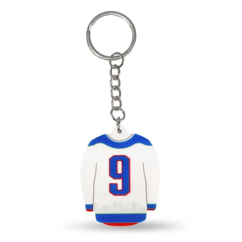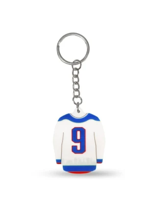 Brelok koszulka hokejowa Polonia Bytom (Away) Szukasz praktycznego, a zarazem stylowego gadżetu, który wyrazi Twoje wsparcie dla drużyny Polonia Bytom? Brelok w kształcie koszulki hokejowej tego klubu to idealny wybór! To nie tylko funkcjonalny przedmiot codziennego użytku, ale także świetna pamiątka, która doskonale oddaje ducha drużyny. Również stanowi praktyczny dodatek do kluczy, plecaka czy torby. Główne cechy: Design: Brelok wiernie odwzorowuje wygląd oficjalnej wyjazdowej koszulki Polonia Bytom, z białym tłem oraz niebieskimi akcentami na rękawach i u dołu koszulki. Duże logo Polonia Bytom: Na przedzie breloka znajduje się charakterystyczne, duże logo klubu, z tarczą w barwach klubowych, co nadaje mu autentyczności i wyróżnia go spośród innych gadżetów. Numer "9" na plecach: Dbałość o detale jest imponująca – na tylnej części breloka widnieje numer "5", elegancko obramowany czerwonym tłem, co dodaje koszulce profesjonalnego charakteru. Szczegóły miasta Bytom