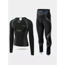 Souprava pánského termoprádla BRUGI. Souprava trička s dlouhým rukávem a dlouhých legín. Oděv je vyroben z vysoce kvalitních strečových termoaktivních materiálů, které se dokonale přizpůsobí tělu a odvádějí vlhkost ven. Rychleschnoucí materiál je ideální pro fyzické aktivity i každodenní použití. Oděvy tohoto typu mohou být první termovrstvou (tzv. základní vrstvou) pro aktivní uživatele. Souprava spodního prádla je ideální pro běhání, cyklistiku, do hor nebo na lyže či snowboard. Spodní prádlo je ideální pro letní i zimní období.