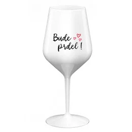Nerozbitná bílá vinná sklenice s motivem BUDE PRDEL! je skvělá na zahradu, pláž, výlet, piknik a parádu udělá i při kempování. Jelikož je vyrobená z kvalitního polykarbonátu je de facto nerozbitná. Je to luxusní kousek, s nímž si víno můžete vychutnat prostě kdekoliv. Mají ergonomický tvar, který příjemně padne do ruky a protože je lehká, usnadňuje to její přenášení. Je snadno skladovatelná a lehce se čistí. Díky svému designu si s ní můžete vychutnat doopravdy kdekoliv bezproblémové pití výborného vína.