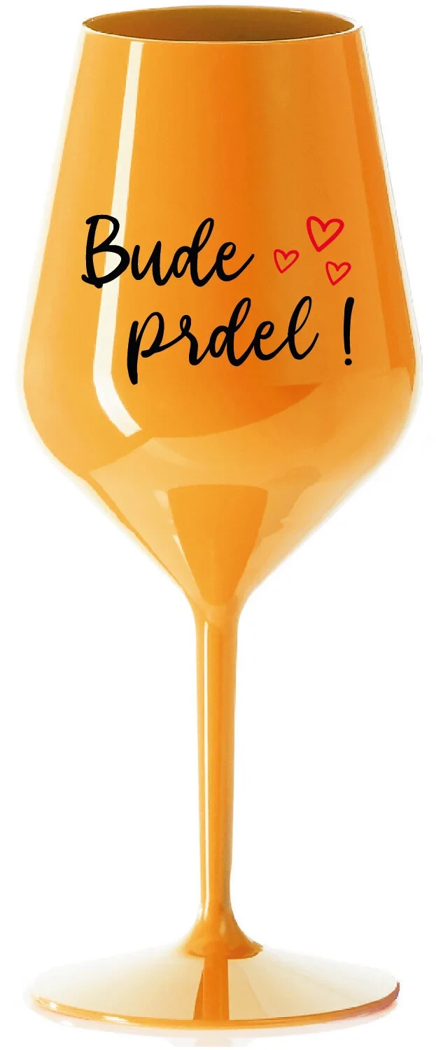 BUDE PRDEL! - oranžová nerozbitná sklenice na víno 470 ml