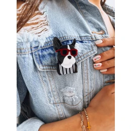 Výrazná brož s motivem psa, která je ideální k připevnění na košili, sako nebo kalhoty.
