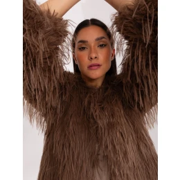 Hnědá přechodová bunda z umělé kožešiny s kapsami .