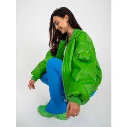 Světle zelená dámská bunda bomber z ekokůže .