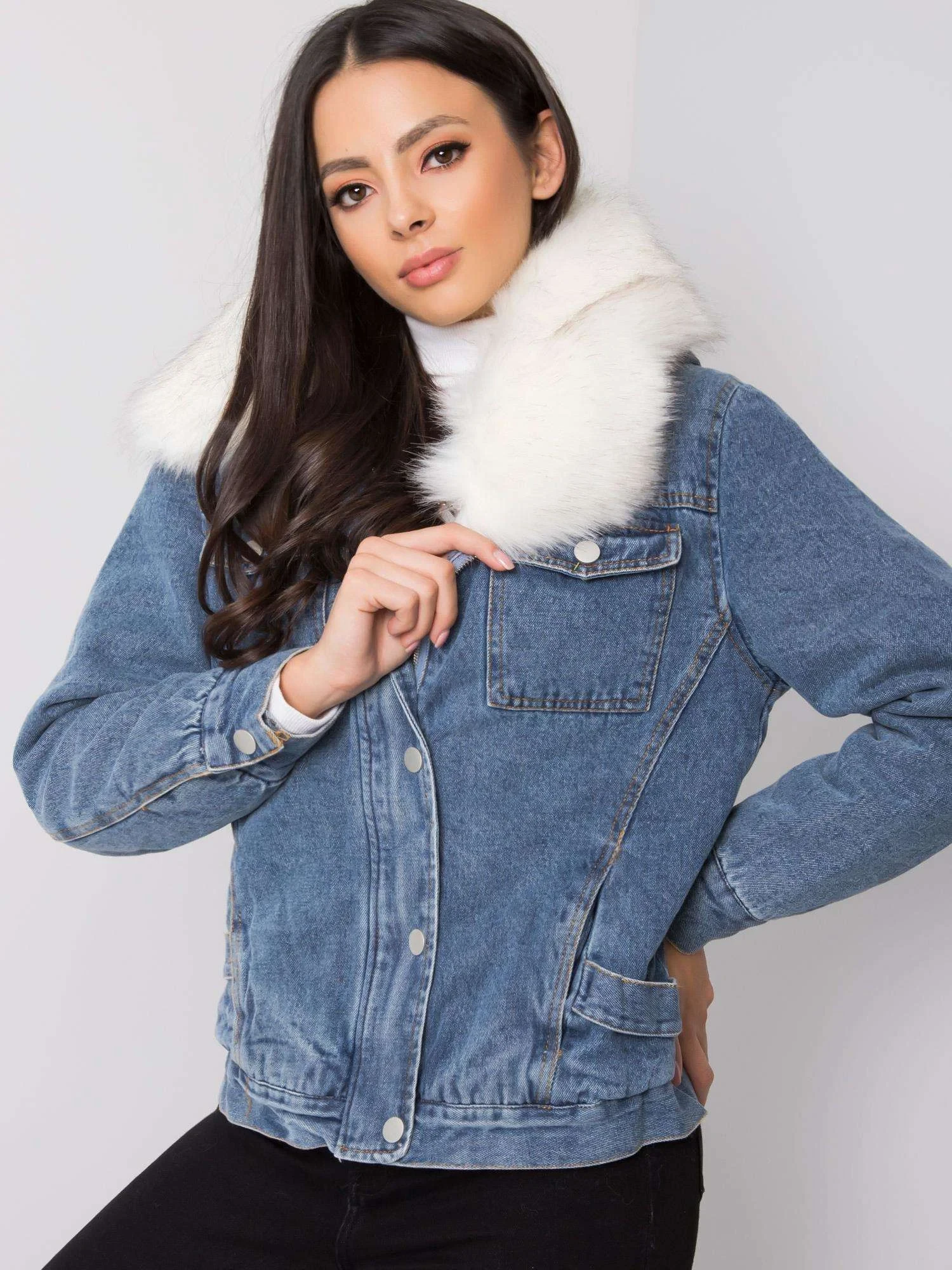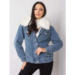 Modrá džínová bunda s kožešinou.