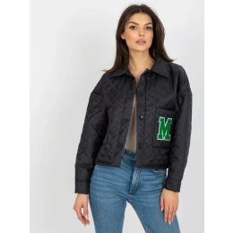 Černá prošívaná bunda se zapínáním na knoflíky .